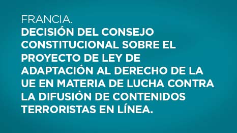 Le Conseil constitutionnel valide la loi contraignant au retrait, dans l’heure, des contenus terrorists sur Internet Galería Le Conseil constitutionnel valide la loi contraignant au retrait, dans l’heure, des contenus terrorists sur InternetSantiago Sosa2022-08-18T19:30:12-03:0018 agosto, 2022|LEGISLACIÓN, Novedades|